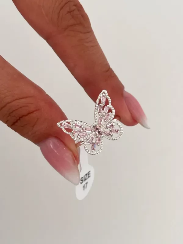 Anillo mariposa rosa bronce blanco